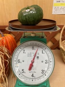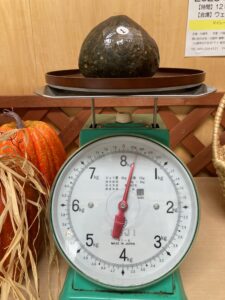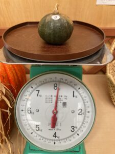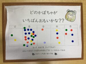 伊佐沼すまいる保育園で採れたかぼちゃで『かぼちゃの重さ選手権』を開催していました。