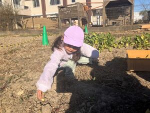 野菜が採れると、「採れた!」「先生見て!」と嬉しそうな笑顔で見せてくれました。