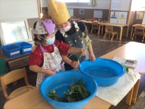野菜のとり方の確認をすると、すぐに教えてくれた子どもたち。