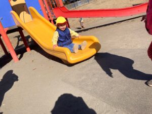 長い距離を歩いたあとでも、遊具へ一目散にかけていきました。