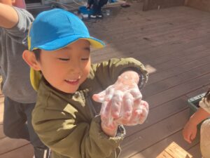 すると1人の男の子が、「手を擦ると固まってくる!」と気付きスライムのように固めることが出来ました。