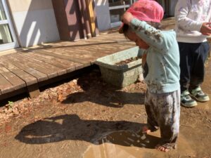 寒かった空気が、太陽の光でぐんっと暖かく感じて子どもたちは我先にと園庭へ出かけていきました。
