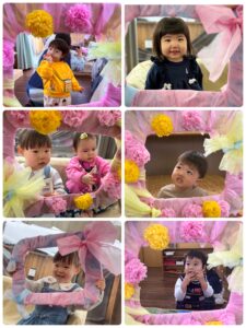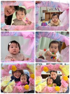 今月の年齢別の日は、春仕様のフォトフレームを作って、順番に撮影しました📸