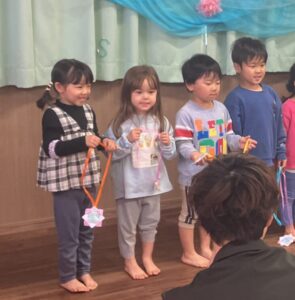在園児から新入園児へプレゼントをお贈りしました。