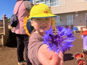 先日、戸外で「お花見つけたよ!」と嬉しそうなお友だちがいました。
