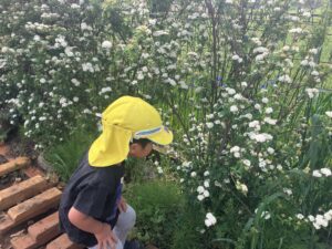 そのあと、てんとう虫が飛んで行ってしまい、「いなくなっちゃった」と少し悲しそうでしたが、再びてんとう虫を園庭で探していました。