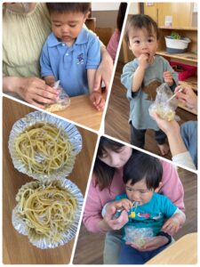 袋を使って混ぜるお手伝いをしてくれました(*^^*)