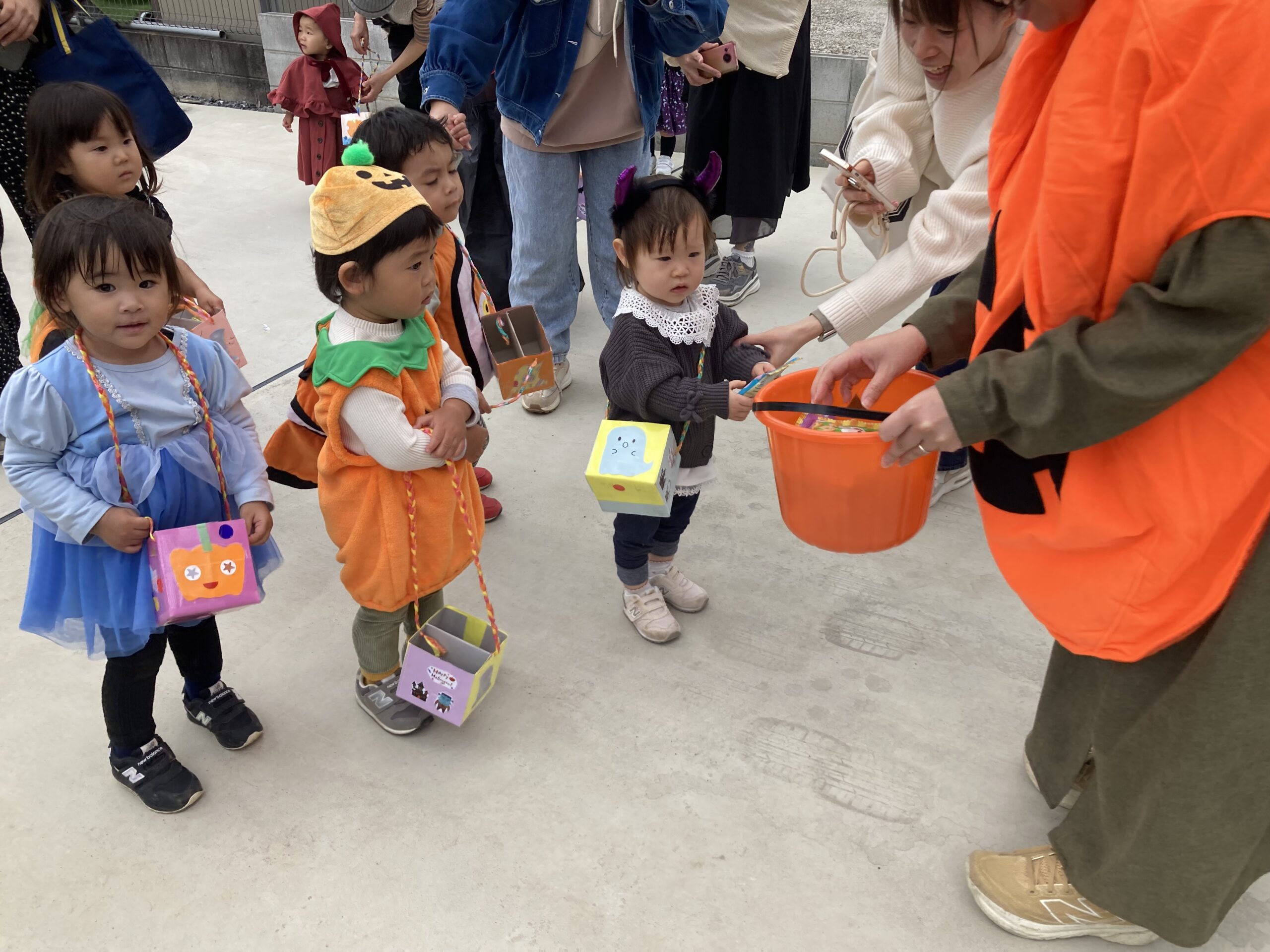 つどいの広場の皆さんも、ご近所さんにお菓子をもらいに行きました♪ たくさん歩いて、お菓子ももらって楽しいハロウィンでした❗️