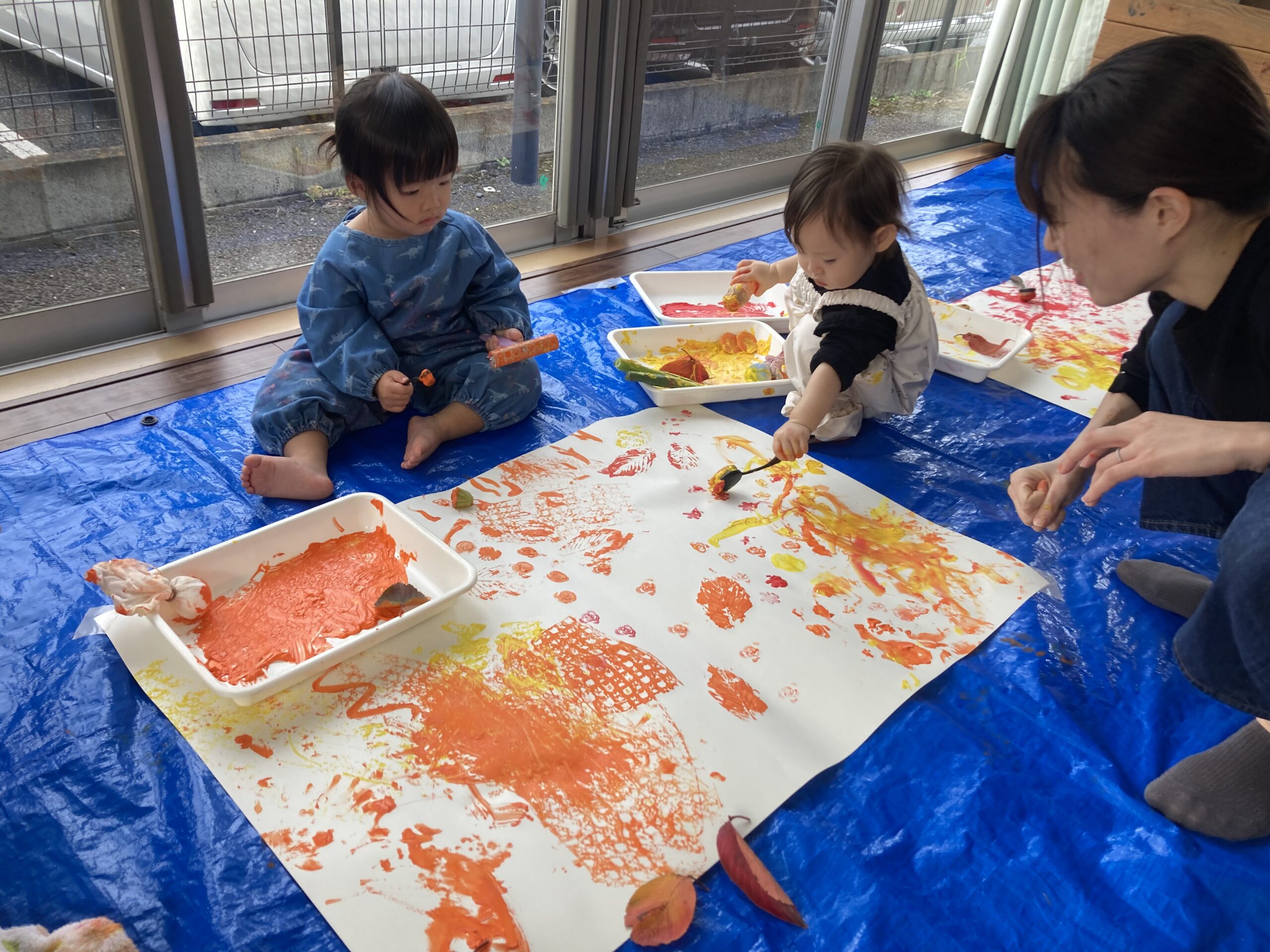 絵の具のぐちゃぐちゃ遊びをしました🎨 秋カラーで素敵な作品ができましたよ🎵 アレンジしてお部屋に飾りますので、お楽しみに✨ &nbs…