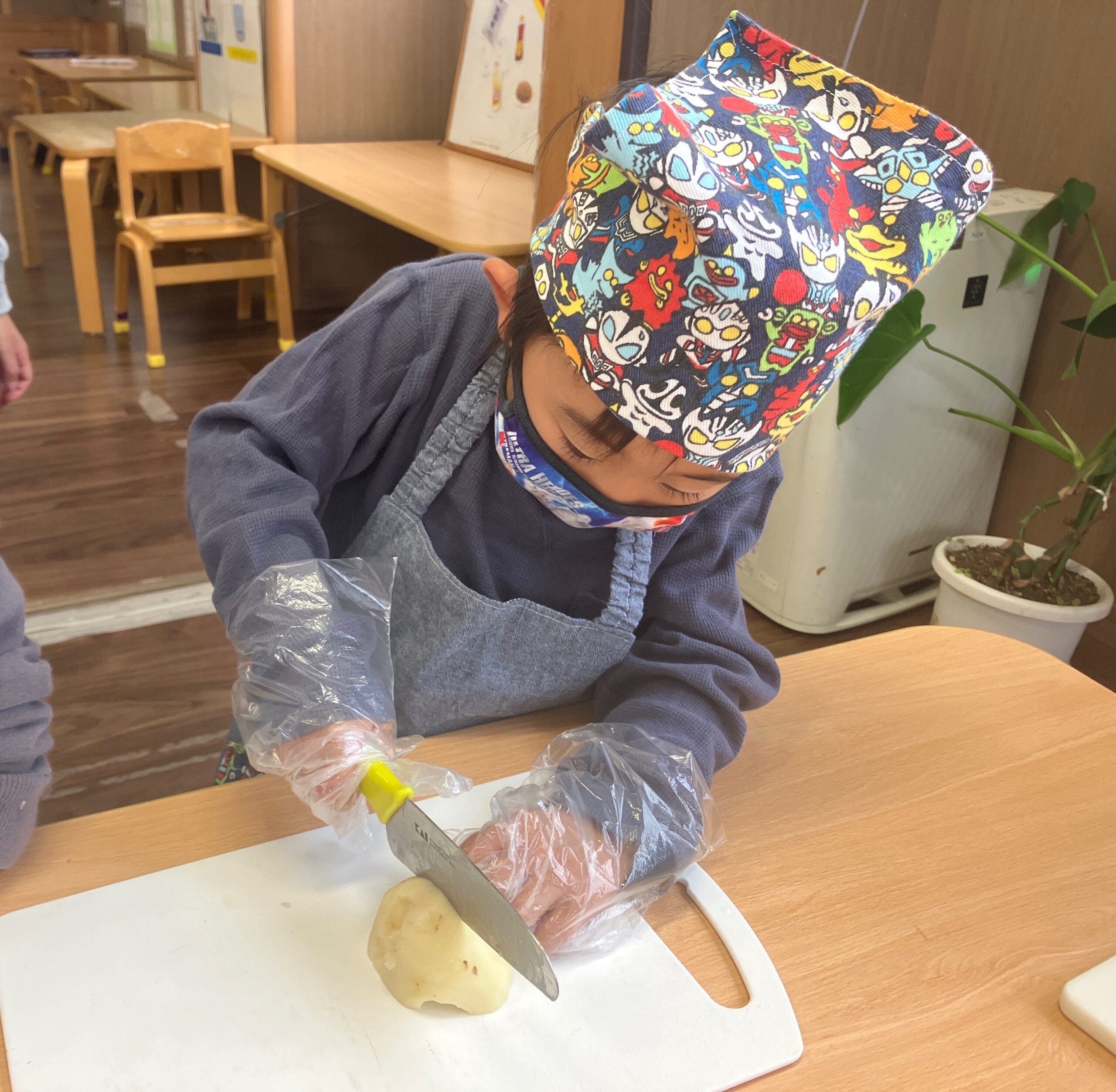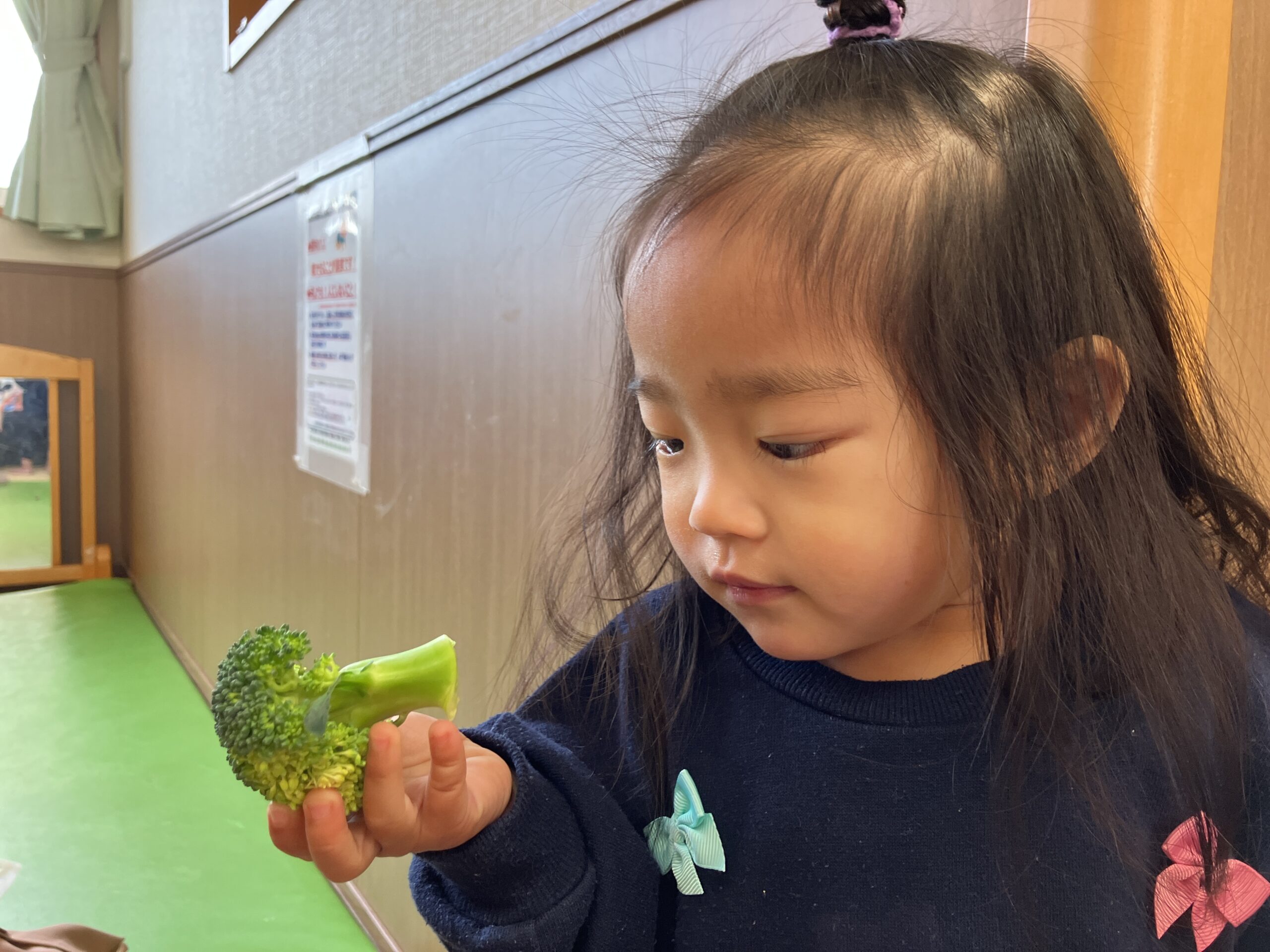 今日は2歳児クラスで食育活動を行いました。冬の根菜といえば、人参、ごぼう、大根があり、みんなでお水で一生懸命洗いました。  …