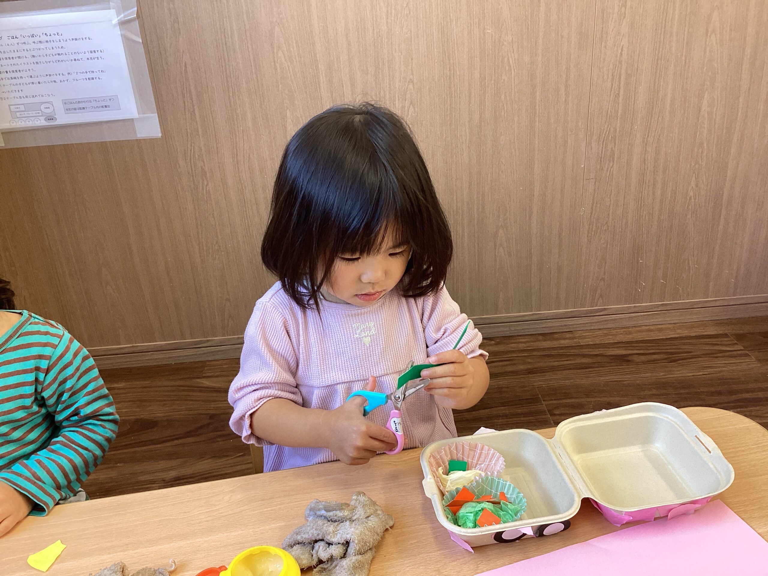 今日も子どもたちはちぎったり、つまんだり、ハサミを使ったりと活動する姿がみられました。 保育園での活動の中に、幼児期の発達の一つであ…