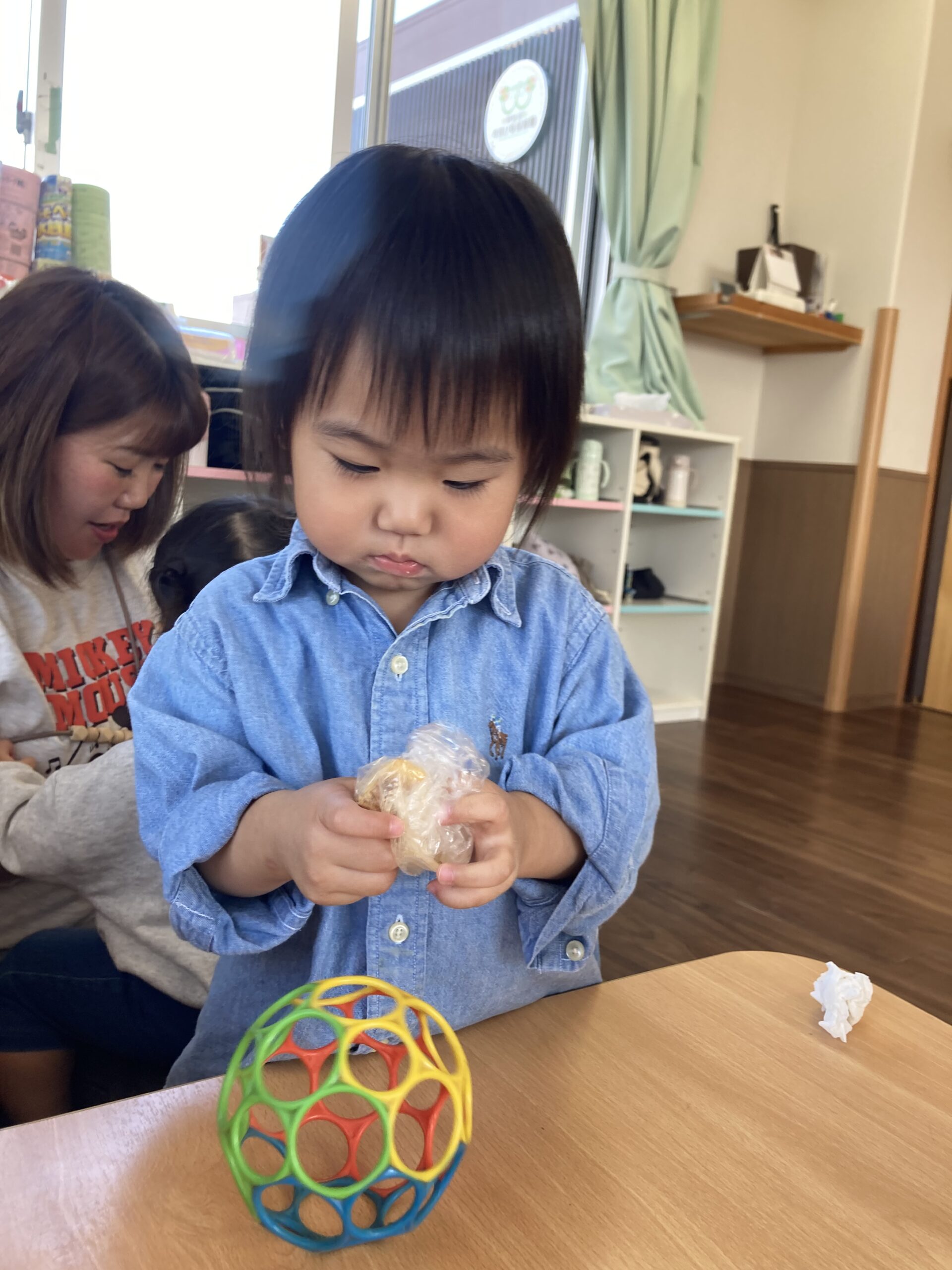 今月のファーストアートは、秋カラーで行いました🍂 絵の具の色に興味深々で、袋の上から伸ばしてくれました❗️ 後半はひとりひとり制作を…