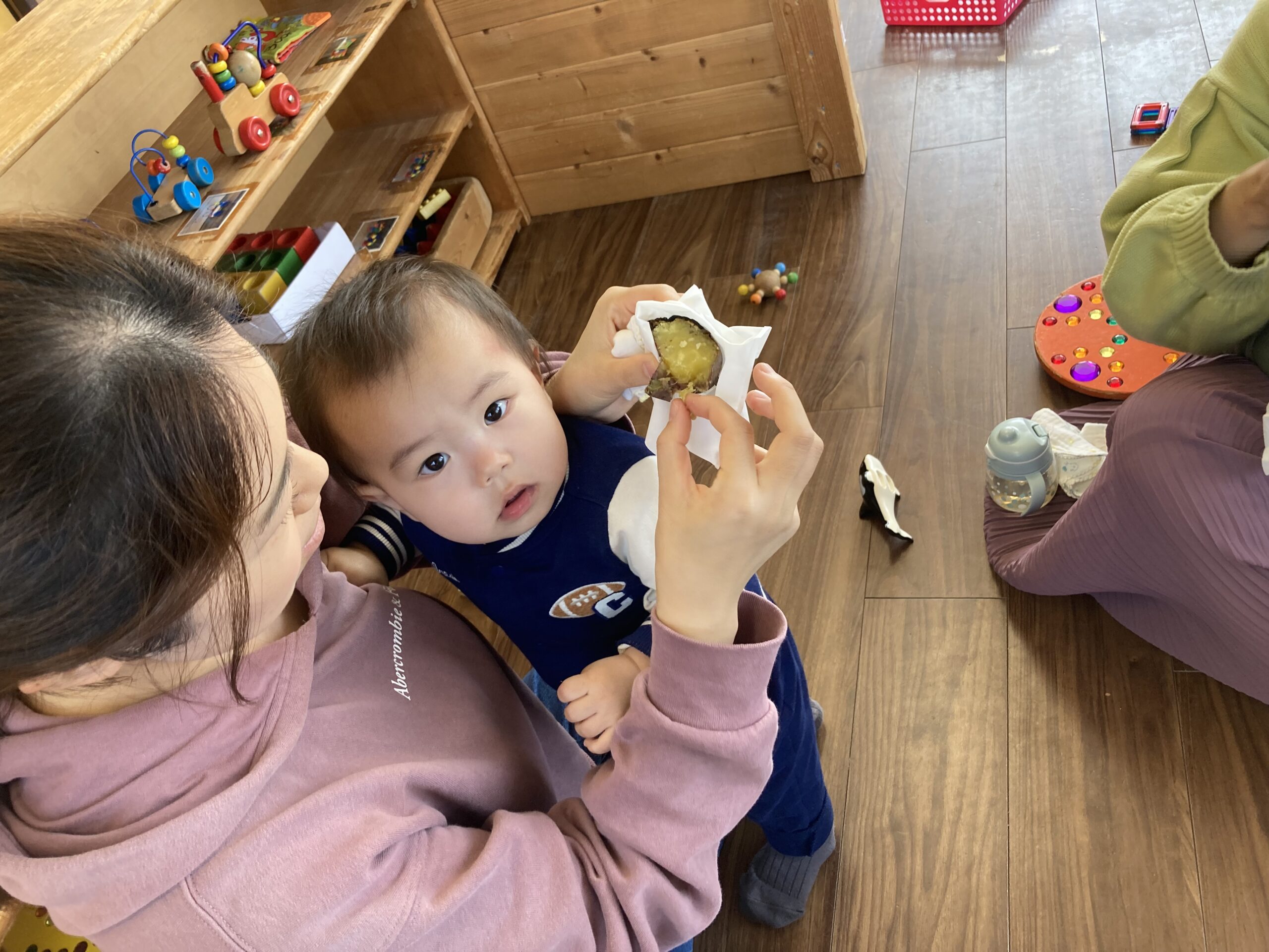 園庭で焼いているサツマイモを見たり、お部屋で焼きたての焼き芋をみんなでいただきました❗️ やきいも美味しかったですね✨