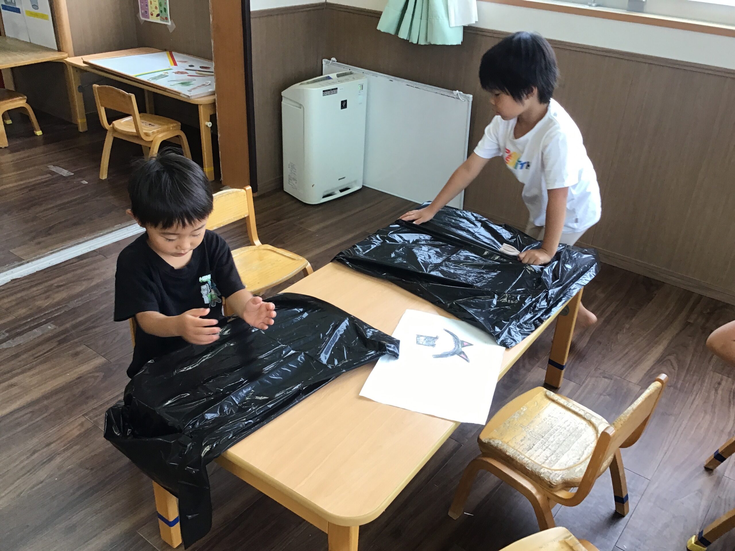 自分で考えたハロウィンの衣装の制作に取り掛かりました。 「どうやったらできるかな?」と考えながら取り組んでいます。お兄さん、お姉さん…