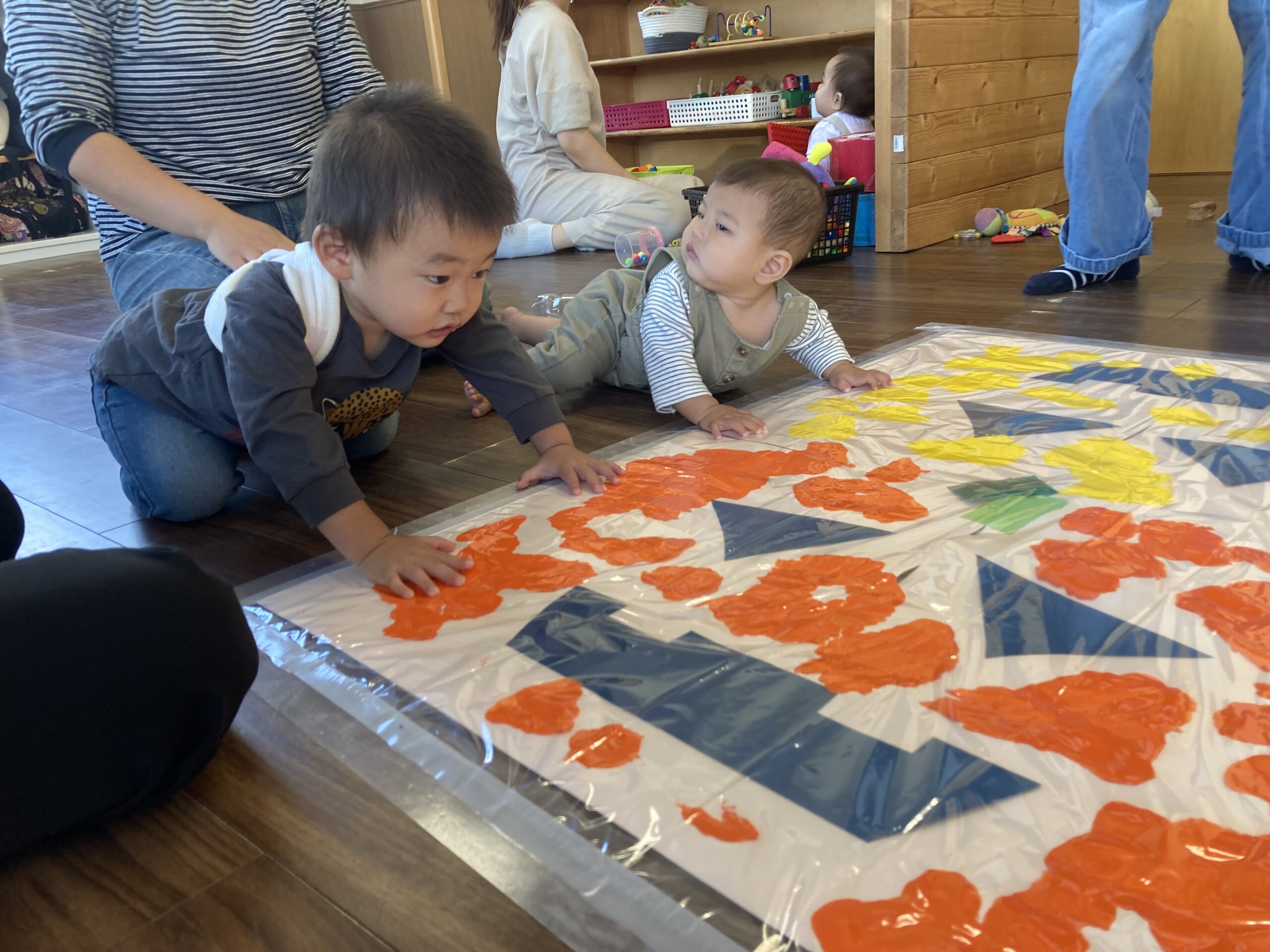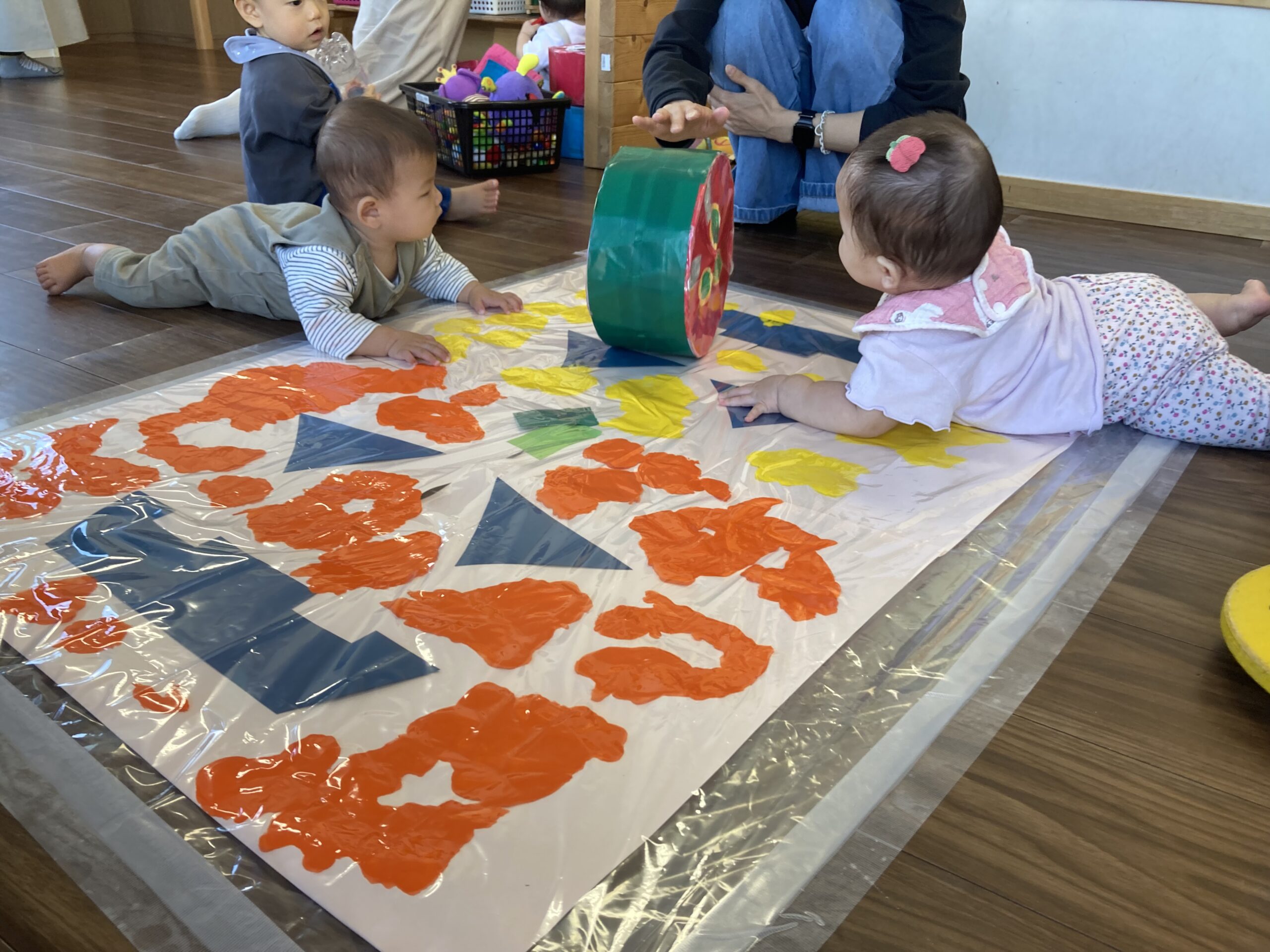 ファーストアート体験は、初めてのお友だちが多かったのですが、皆さん興味を持ってペタペタ触ってくれましたよ♪ みんなでア…