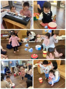 つどいの広場のリトミック♬らららmusicは、リズム遊びや楽器で演奏をして遊びました!